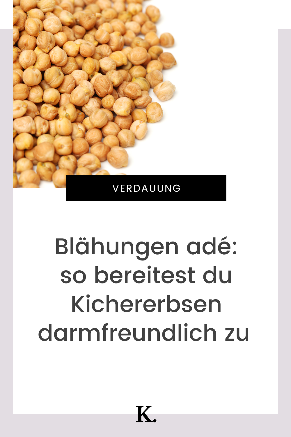 Durch das Einweichen der Kichererbsen über Nacht und das anschließende gründliche Spülen können die unverdaulichen Oligosaccharide reduziert werden. Weicht die Kichererbsen in ausreichend Wasser ein und spült sie vor dem Kochen gründlich ab, um den Großteil der blähenden Stoffe zu entfernen.